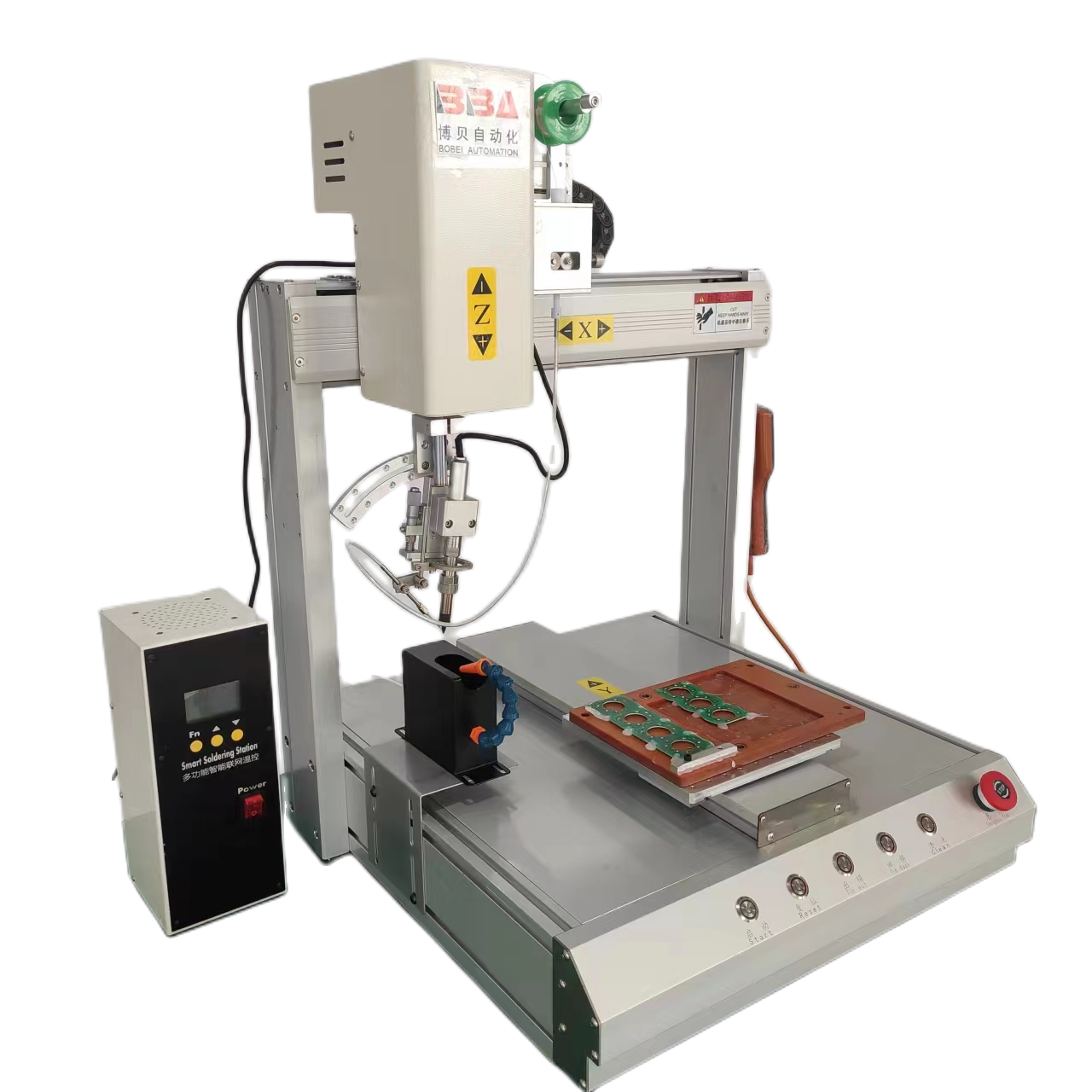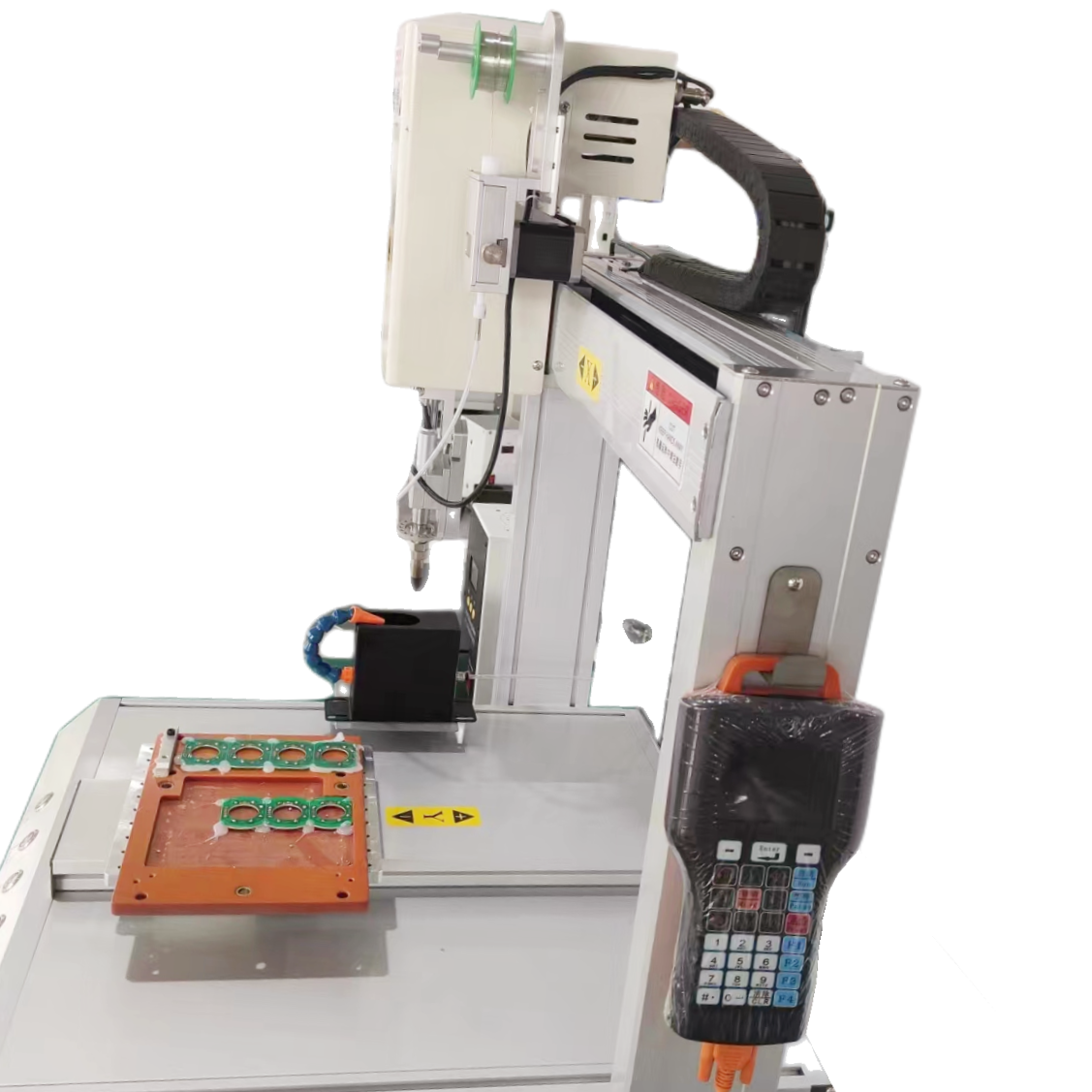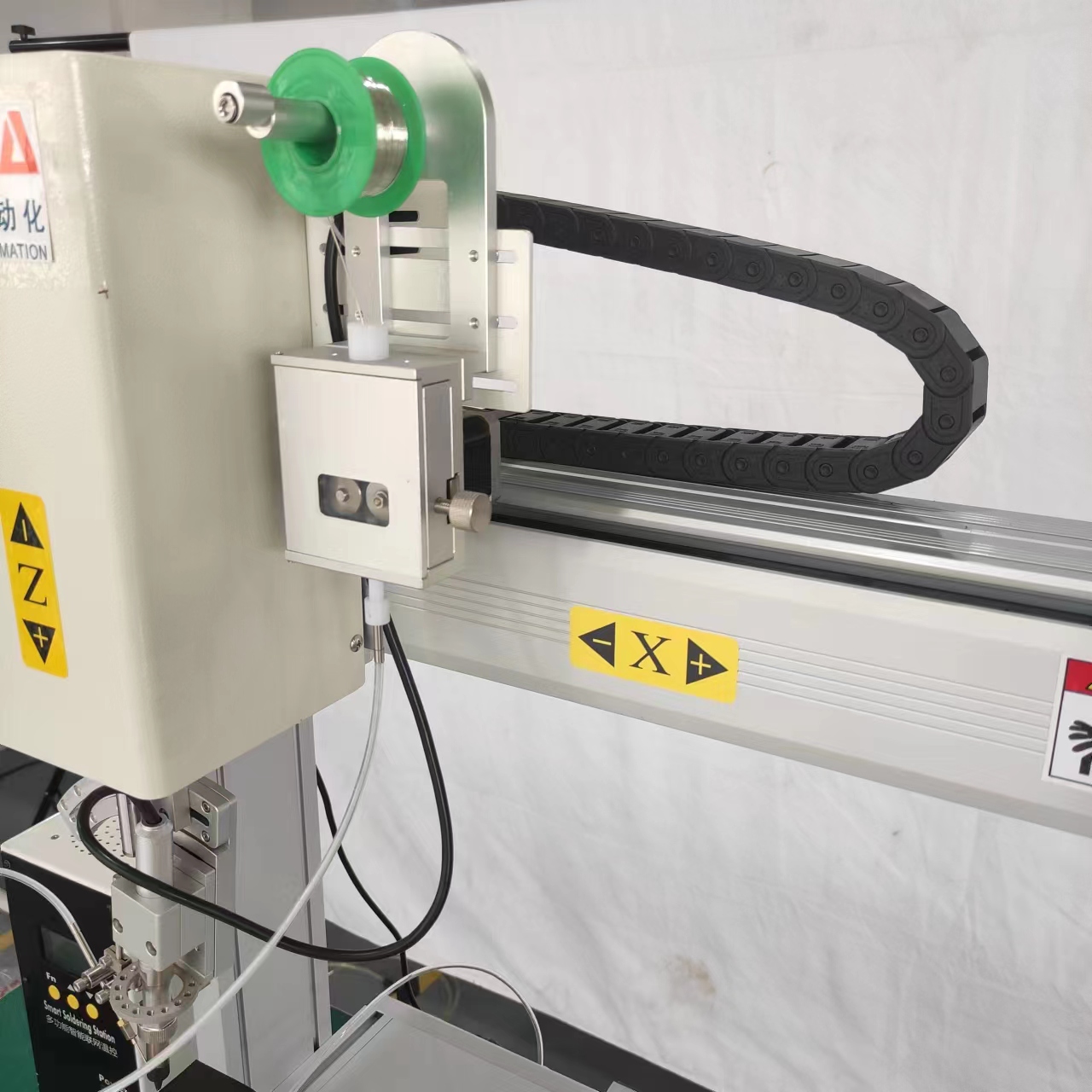 2、采用多軸機(jī)械(xiè)手及先進運動控製算法進行聯動,模擬人手加錫動(dòng)作,有效提高烙鐵頭的定位精度。