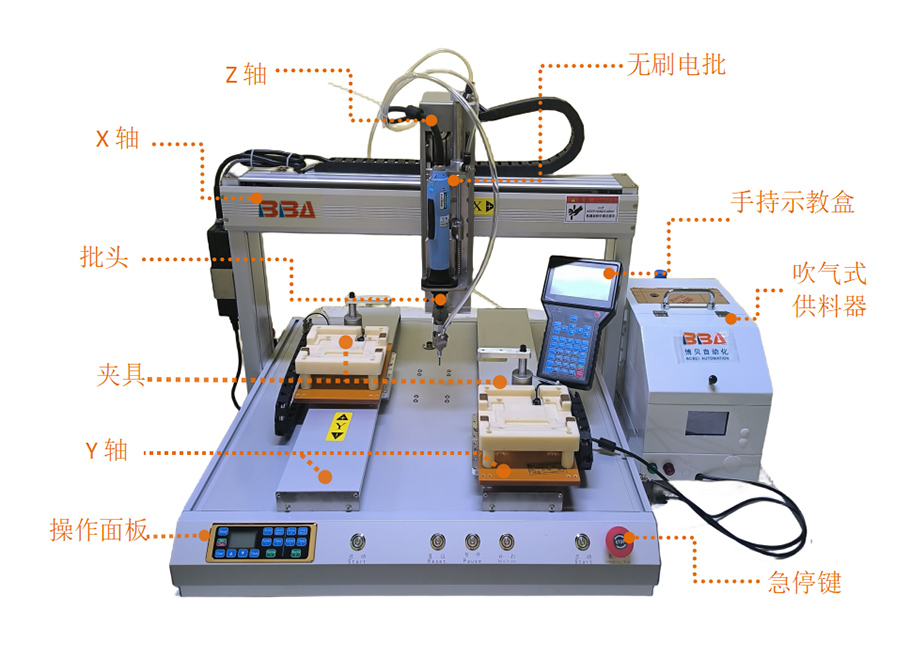 博貝(bèi)立(lì)櫃吹氣式自動鎖螺絲機泥撬螺絲(sī)自動擰緊設備