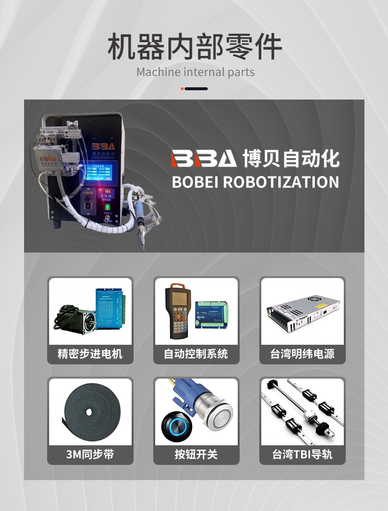 博貝自動(dòng)化,是專門從事自(zì)動焊錫機機,自動焊錫設備,焊錫機器人的專業生產廠家。機器樣式多樣,亦可根據產品定製機型。有單工位,雙工(gōng)位,多工位,在線式,單頭,雙頭及多頭螺(luó)絲機供不同產品的自動(dòng)鎖螺絲的需求。更(gèng)多信息,請谘詢(xún)熱線:18617279323